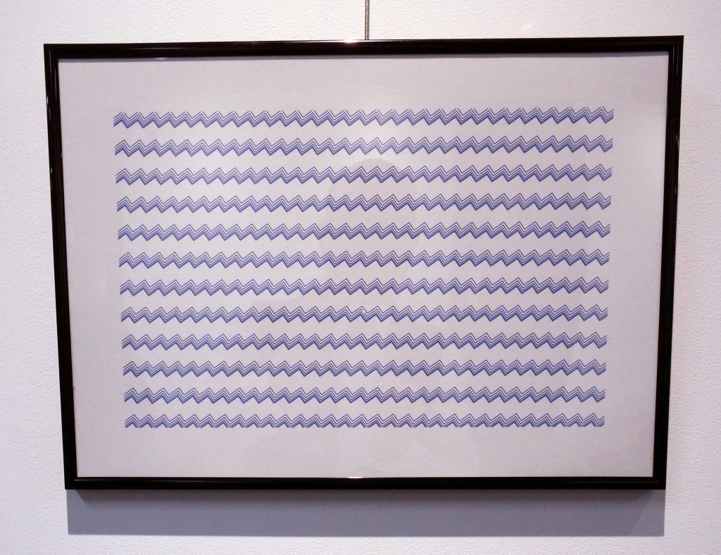 The First exhibition I had at Sense consisted of ten A3 size prints and they represented memories from analogue to digital age. Finn, “My earliest memory is my father banging the television trying to get it to work. The zig zags took me days to perfect. To create the sense of the fist bashing against the timber of the television”