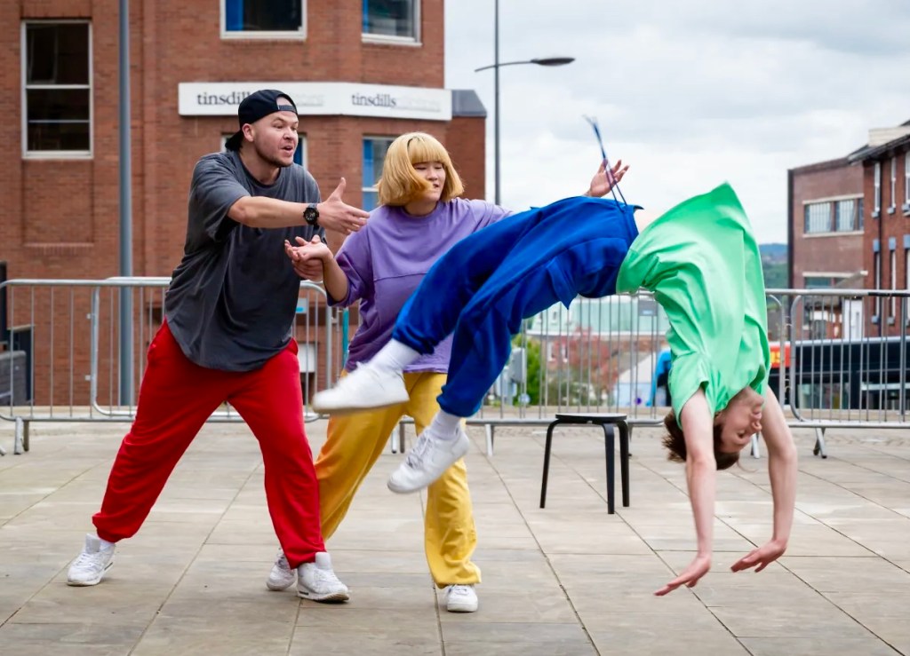 Ariel Fung, Ben Randall and Billy Read in a brand-new outdoor dance performance for Appetite, Stoke-on-Trent.